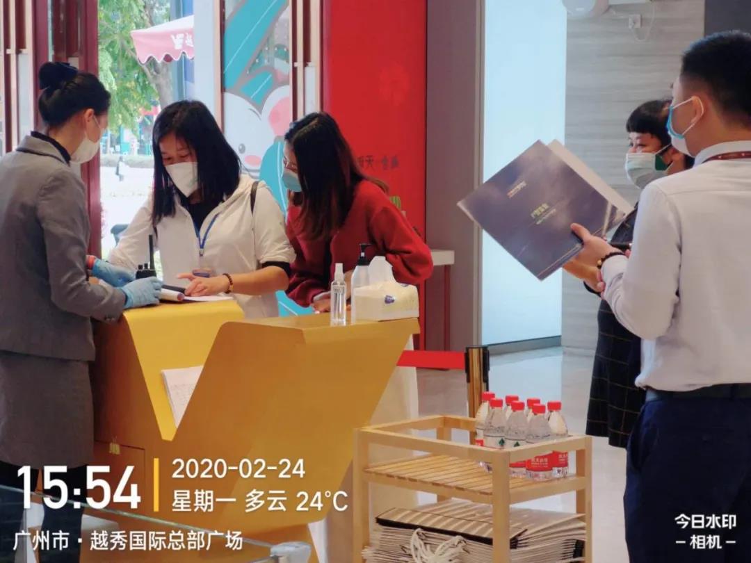 大湾区西部区域各销售中心员工也已全部到岗复工。为了让客户安心看房,销售人员佩戴口罩做好自身防护的同时,还会协助前来看房的客户做好体温测量、口罩佩戴、手部和鞋底消毒。此外,各销售中心采取每天多次定时定点消毒措施。