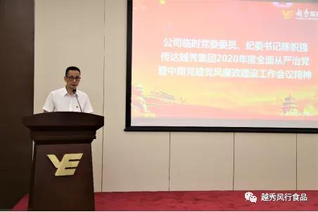 星空电竞风行食品临时党委委员、纪委书记陈帜强传达了星空电竞集团2020年度全面从严治党暨中期党建党风廉政建设工作会议的相关精神。