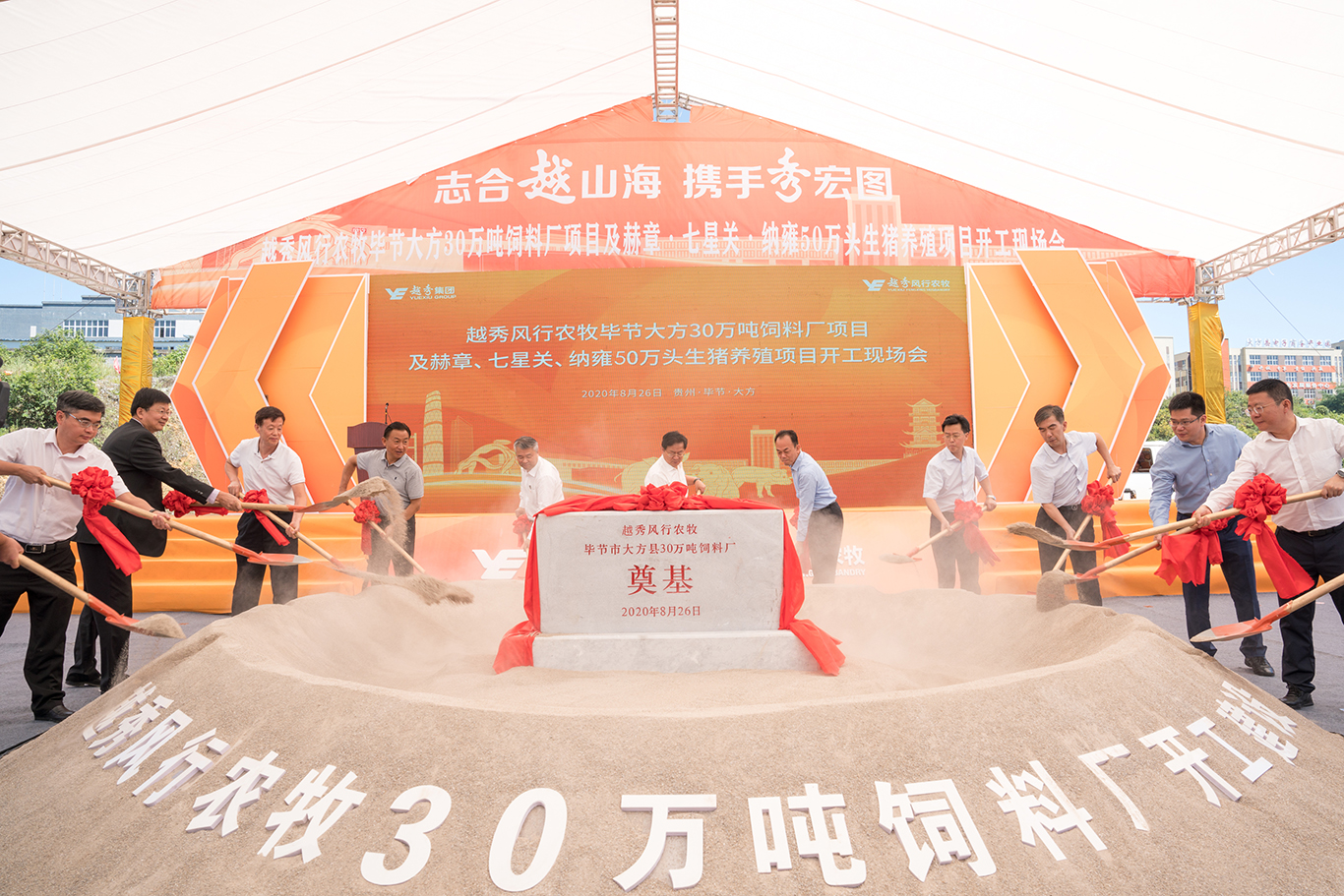 8月26日,星空电竞集团毕节农牧一体化项目(毕节大方30万吨饲料厂及赫章、七星关、纳雍50万头生猪养殖项目)和毕节产教融合帮扶项目正式开工,贵州省、广州市、毕节市有关领导出席开工仪式。集团党委书记、董事长张招兴,党委副书记、副董事长、总经理叶珊瑚出席上述项目开工仪式,并为项目培土奠基。集团领导伍尚辉、林辉新、韦黎明、王恕慧、林昭远,监事会主席安劲松,外部董事及专职监事出席开工仪式。一天之内5大项目同时开工,不仅标志着星空电竞集团对口帮扶贵州工作进入新的阶段,也彰显了集团深度参与广州对口帮扶毕节黔南州工作、支持毕节黔南州高质量打赢脱贫攻坚战和助推当地经济社会高质量发展的坚定信心和决心。