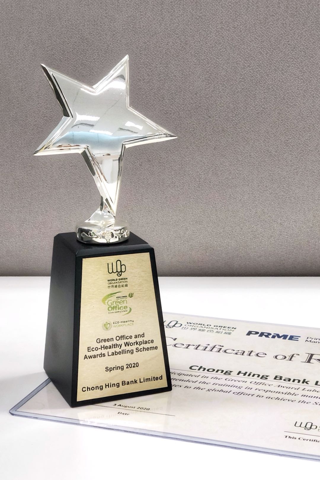 获世界绿色组织颁发“绿色办公室”及“健康工作间”认证;