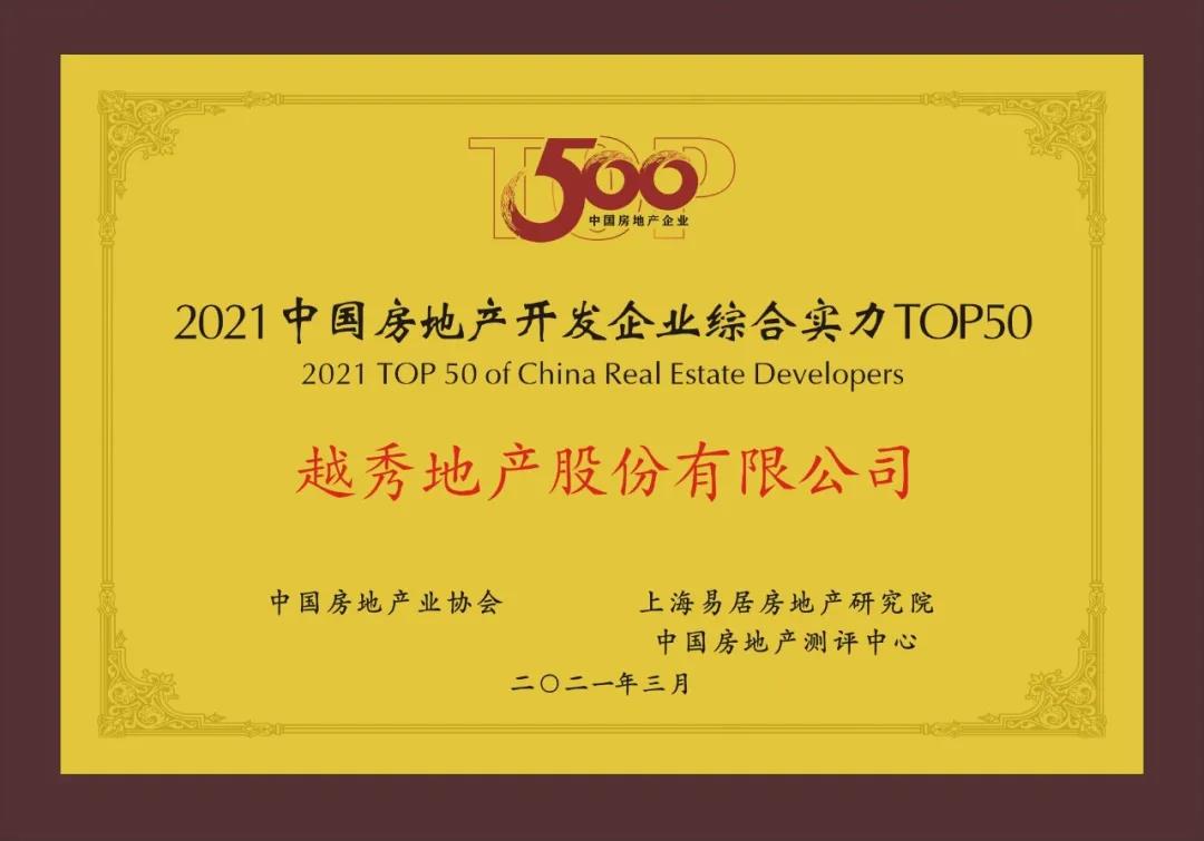 此次星空电竞地产获得 “2021中国房地产开发企业综合实力TOP50”、