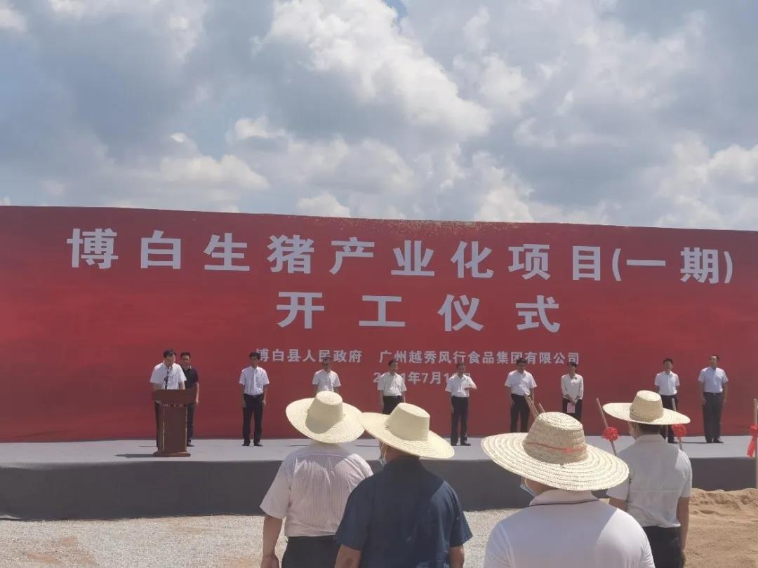 博白县委副书记周印章对项目开工表示热烈祝贺,他在发言中提到,博白是全国生猪调出大县,今天开工的百万生猪产业化项目建成后,对推动博白生猪产业升级、融入广州市菜篮子工程,扩大百姓就业,助推农民增收,促进乡村振兴,改善生态环境,具有极大的促进作用。博白将以最高的效率、最优的服务、最佳的环境,保障项目顺利实施,争取早日建成投产。