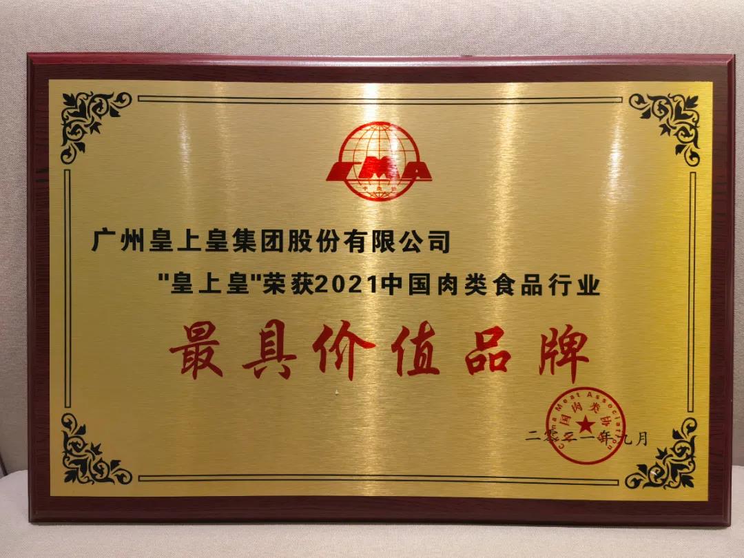 “中国肉类食品安全信用体系建设示范项目”是中国肉类协会根据国务院发布的《社会信用体系建设规划纲要》和中国肉类食品行业发展要求,开启具有食品行业规范作用的示范项目。项目每年发布示范企业信息,代表的是品质、安全、放心和诚信,目前参与该项目的均为肉类行业标杆或龙头企业。大会期间,皇上皇集团还被授予“2021中国肉类食品行业先进企业”称号,“皇上皇”品牌荣获“2021中国肉类食品行业最具价值品牌”。
