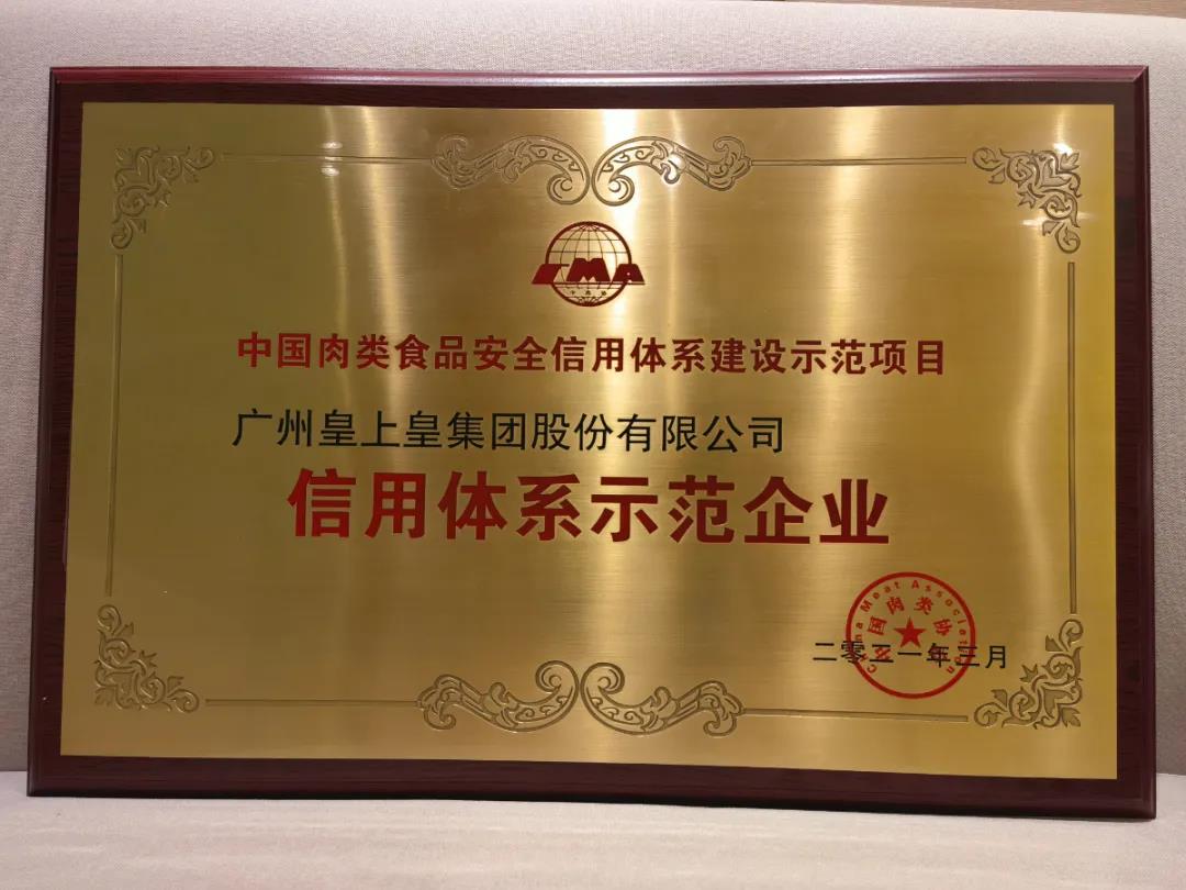 一直以来,皇上皇集团以食品安全为己任,实施“上控源头、中控物流与渠道、下控终端”战略,凭借先进的管理体系和过硬的产品品质,为消费者的“肉盘子”保驾护航。在2021年肉类产业发展大会上,皇上皇集团被授予“中国肉类食品安全信用体系建设示范企业”称号。